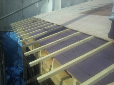 空気が流れる仕組みになっています。写真のルーフィングの下には