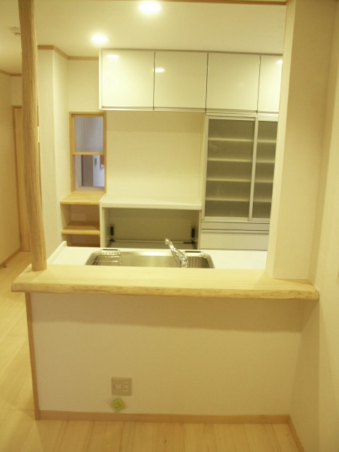 無垢イチョウ材のカウンター。以前に紹介したことのある