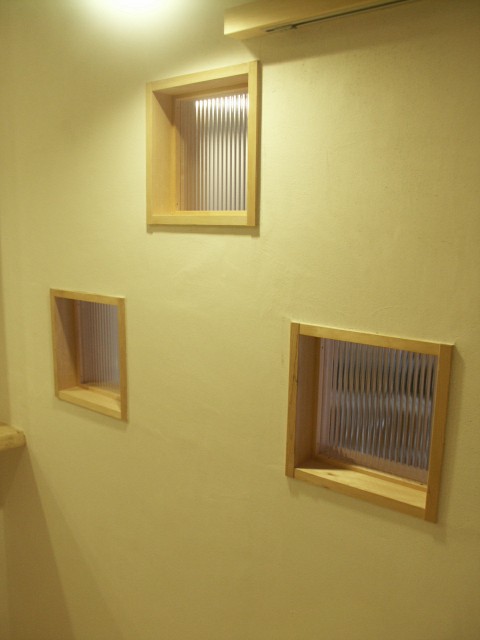 3つ並んだ飾り窓も結構、柔らかい光が洩れていい感じなんです。