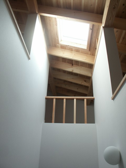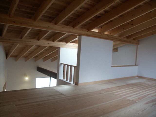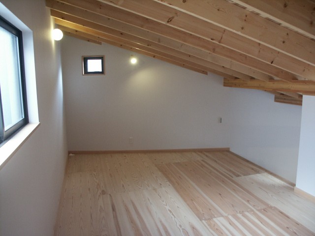 床は杉材で仕上げ、壁紙はドイツのウッドチップ壁紙を貼っています。