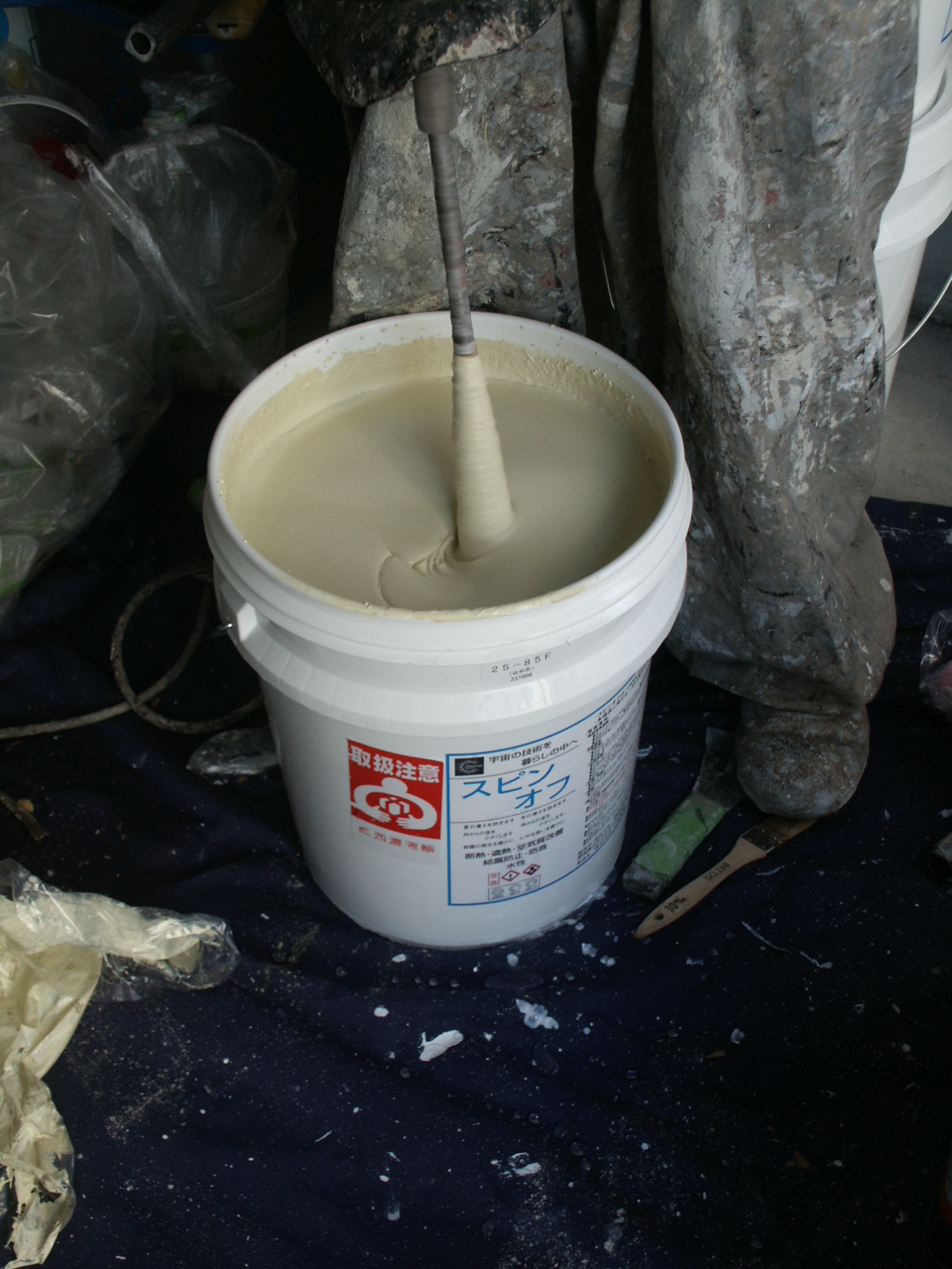 よく撹拌しないといけません。普通の塗料と違い、かなり重いです。
