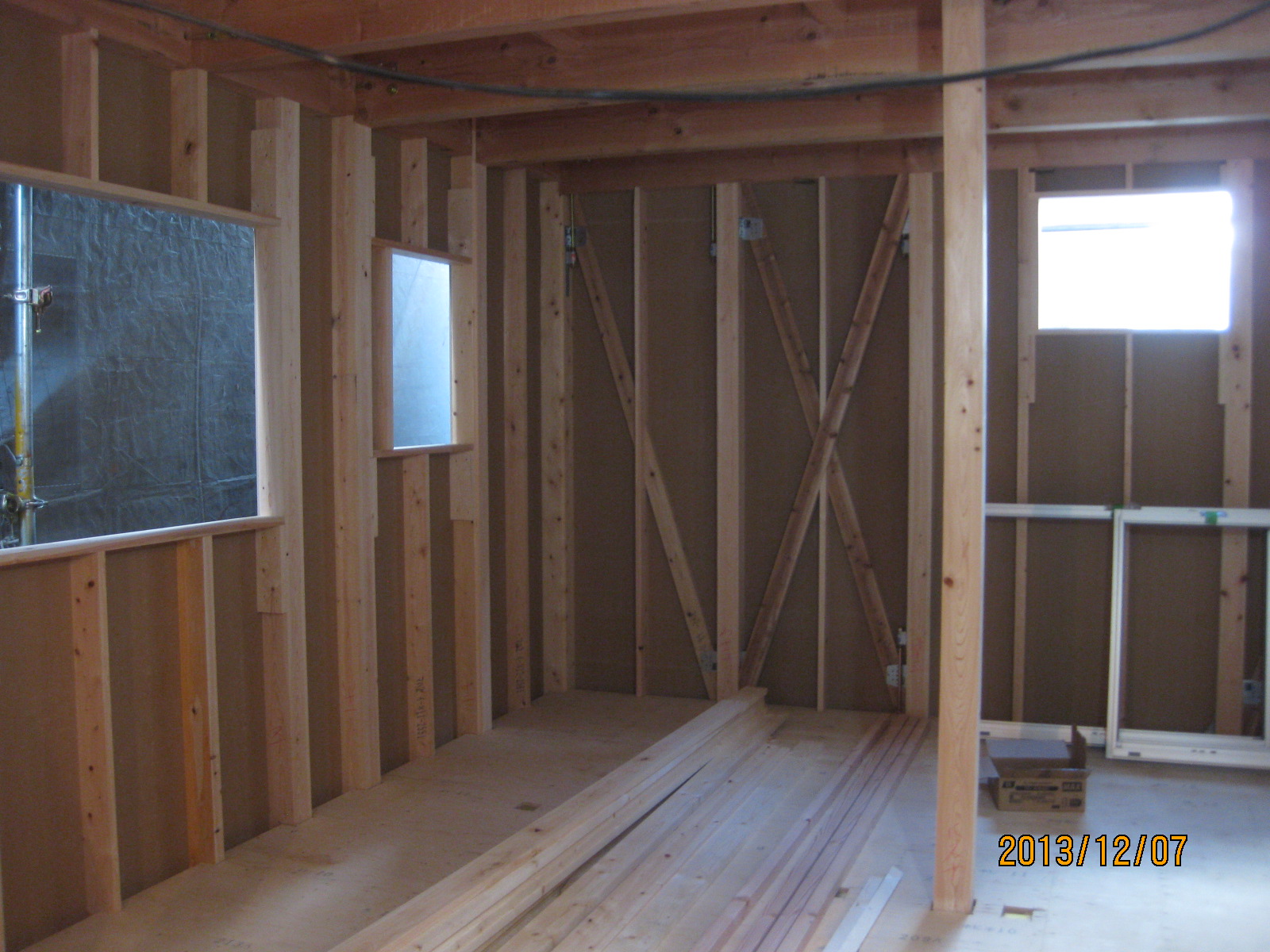 今回は、ダイライトという耐力面材を外壁面に張ります。