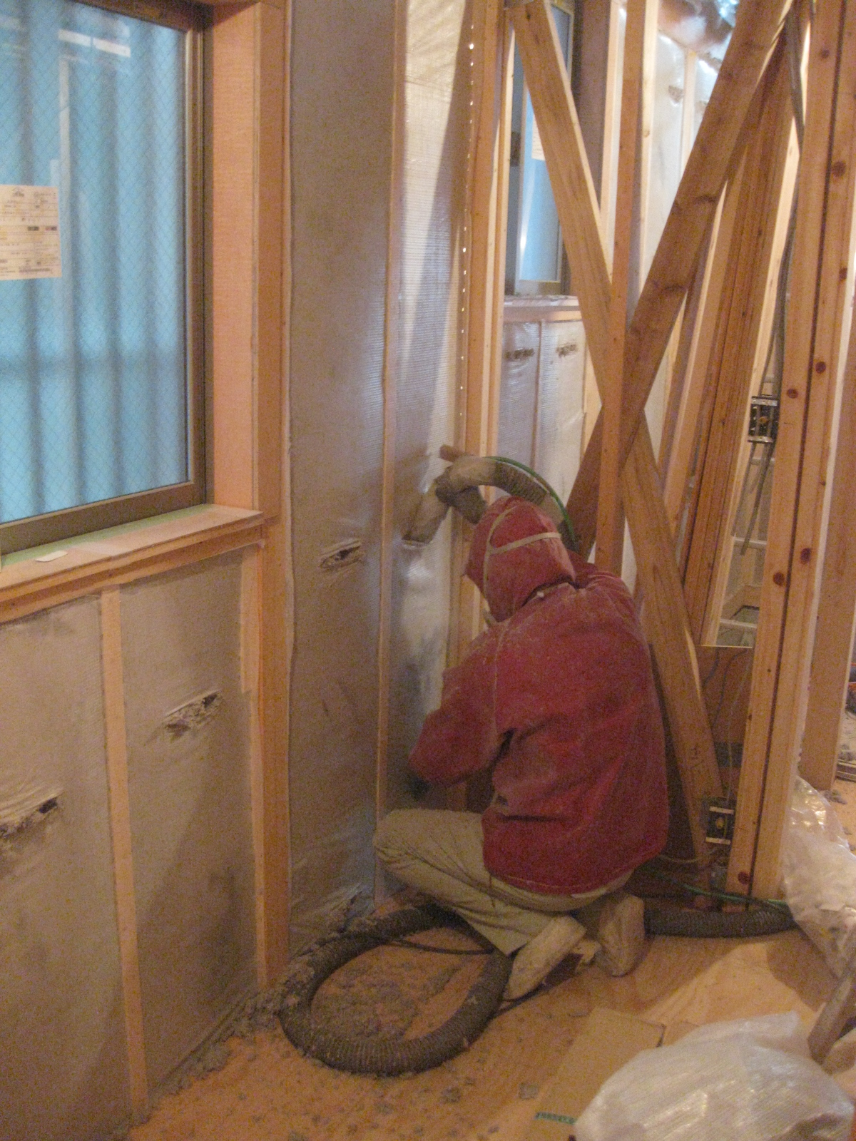 内壁に専用のネットを張り、中へ吹き込んでいきます。