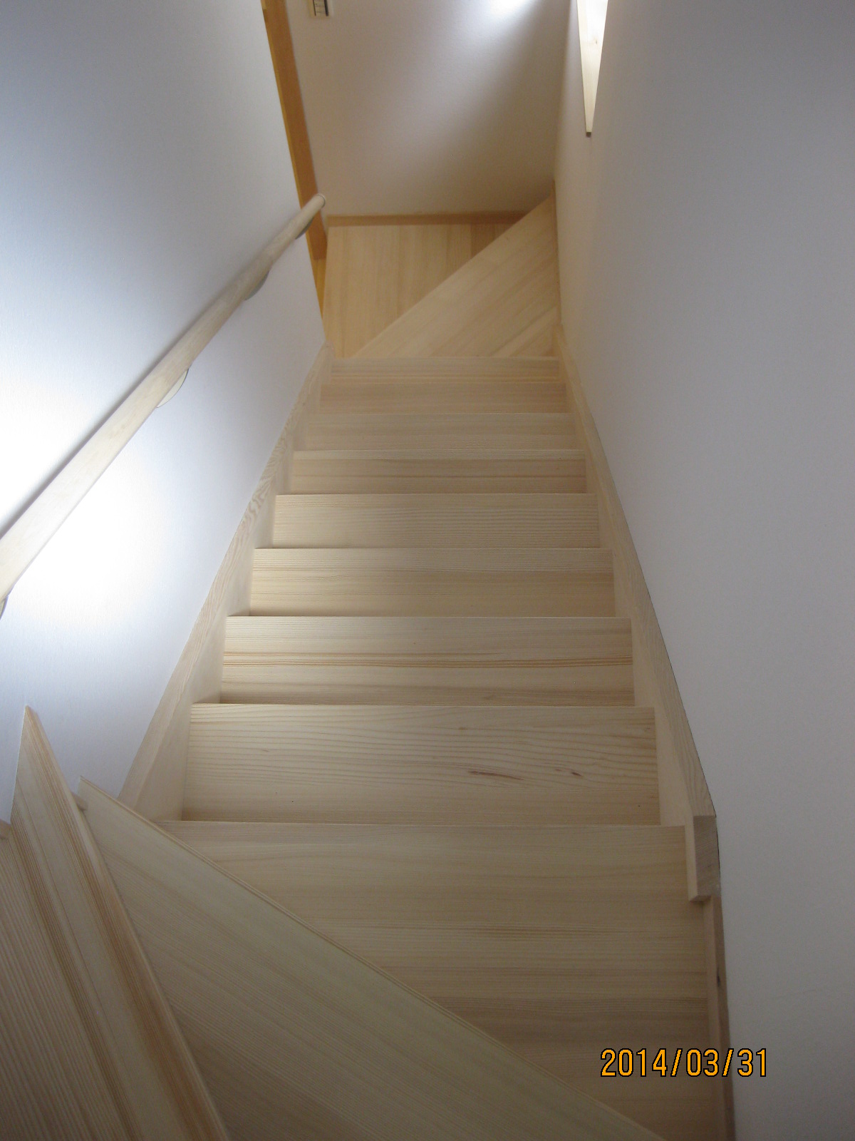 柔らかい樅の踏み板で造った階段は、下るときに