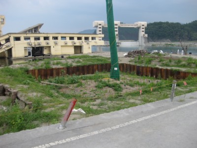 水没しているので、わかりますが、陸地が大きく削られて、松の木のすぐ近くまで、