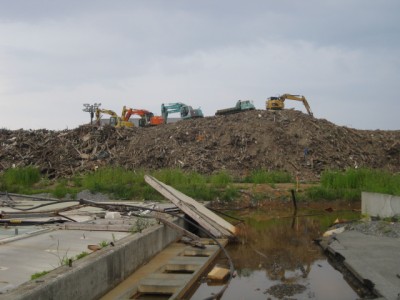 街がありません。至るとこに収集されたガレキの山があるくらい。