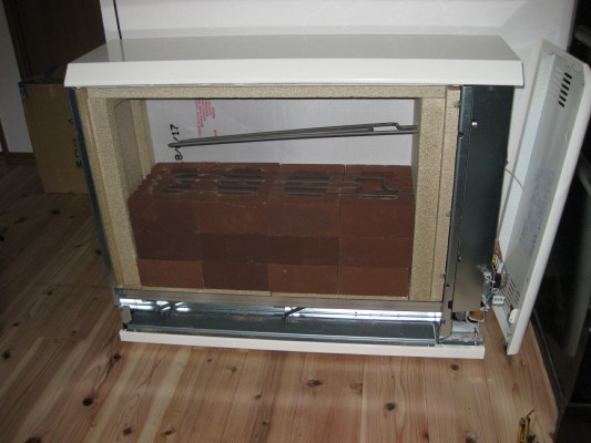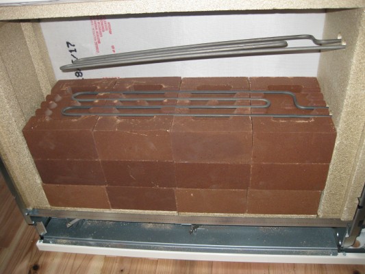 レンガとレンガの間にシーズヒーターという電熱コンロのような熱源が挟まってます。