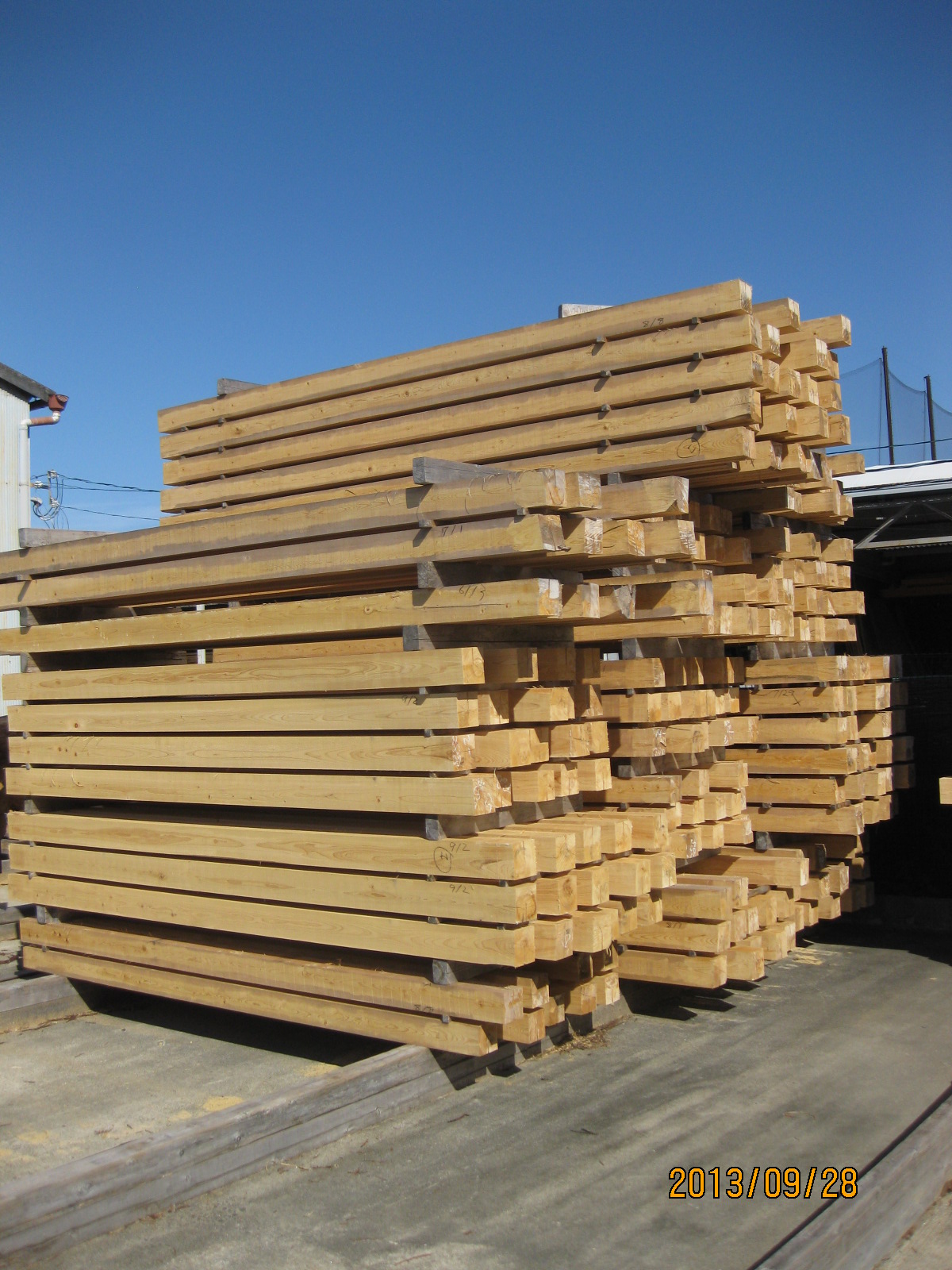 吉野で天然乾燥されている桧材。わたしが