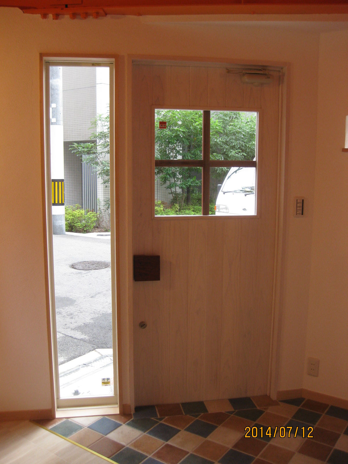 中がそれとなく見える程度にトーメイガラスがあり、