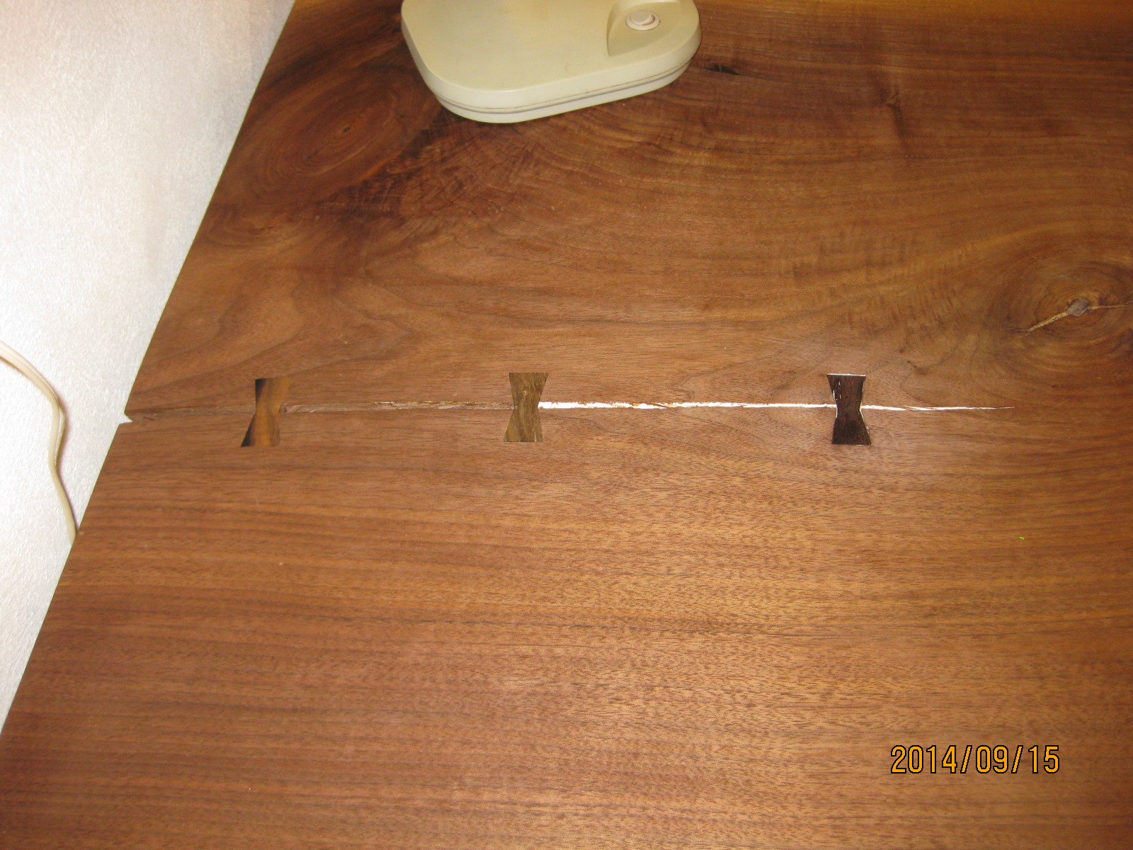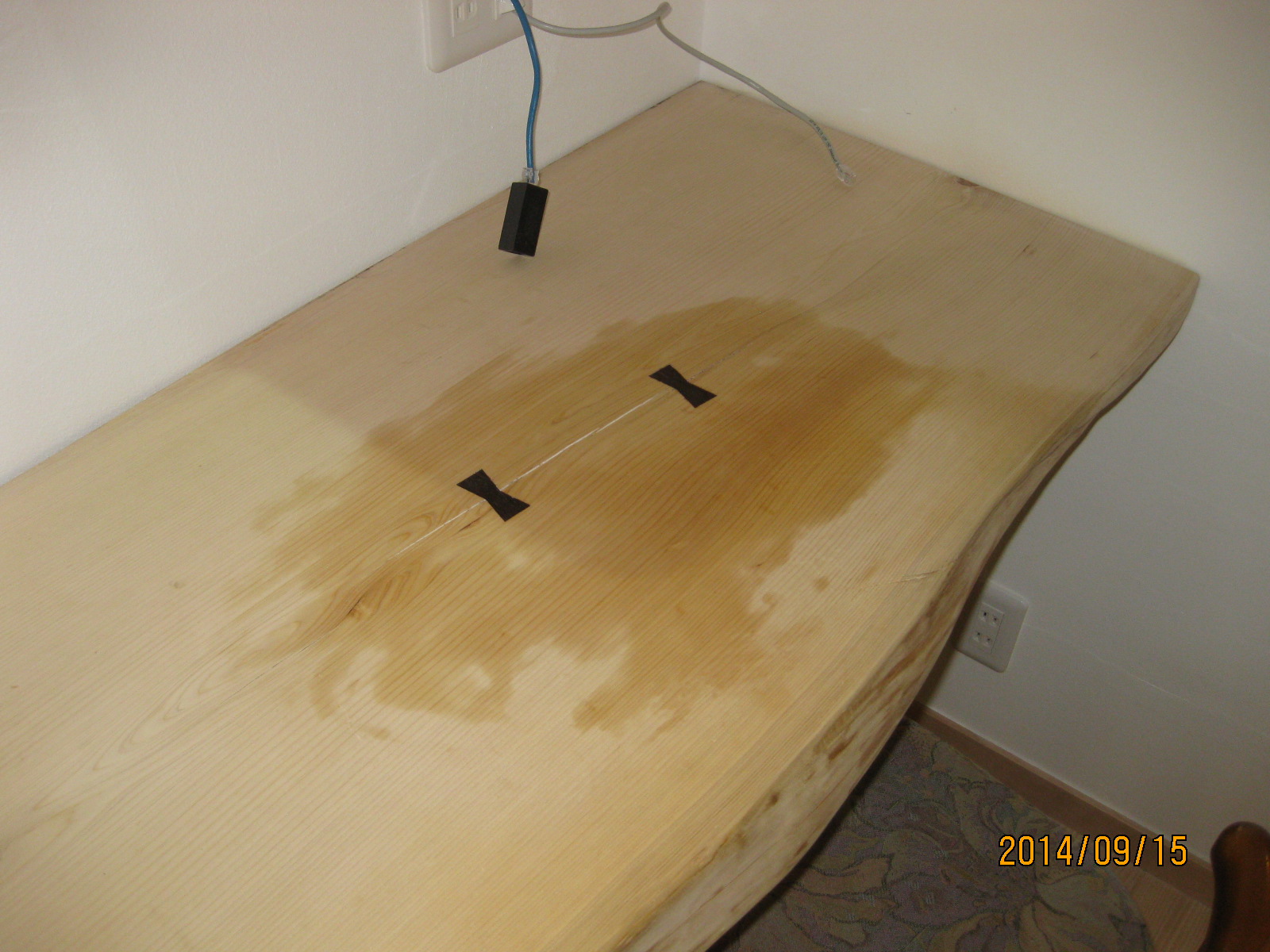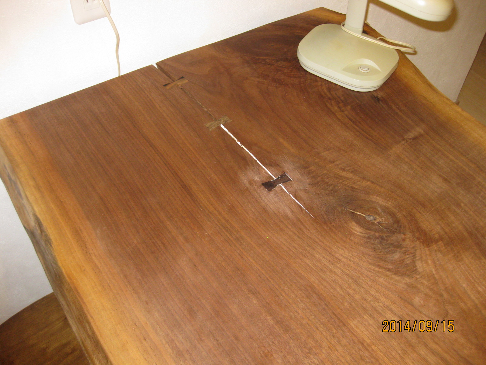能登ヒバ材のカウンターの真ん中にピリ割れがあったのですが