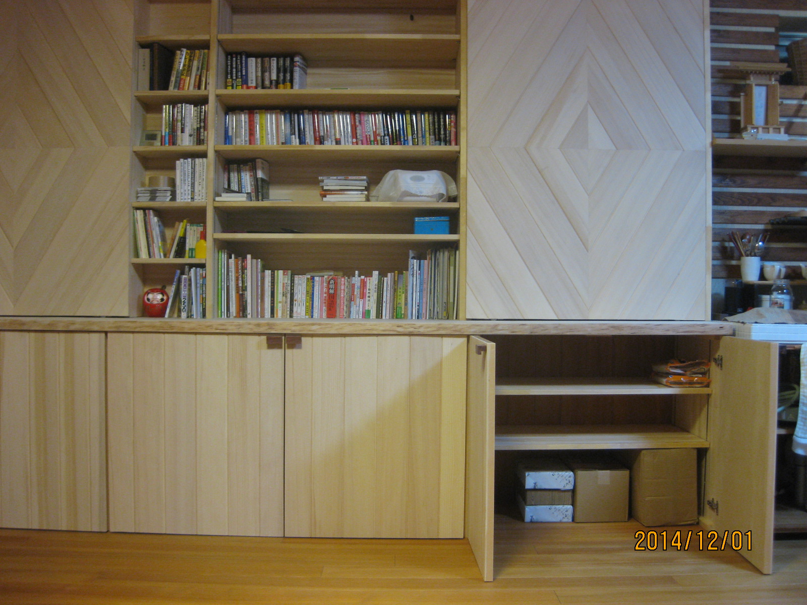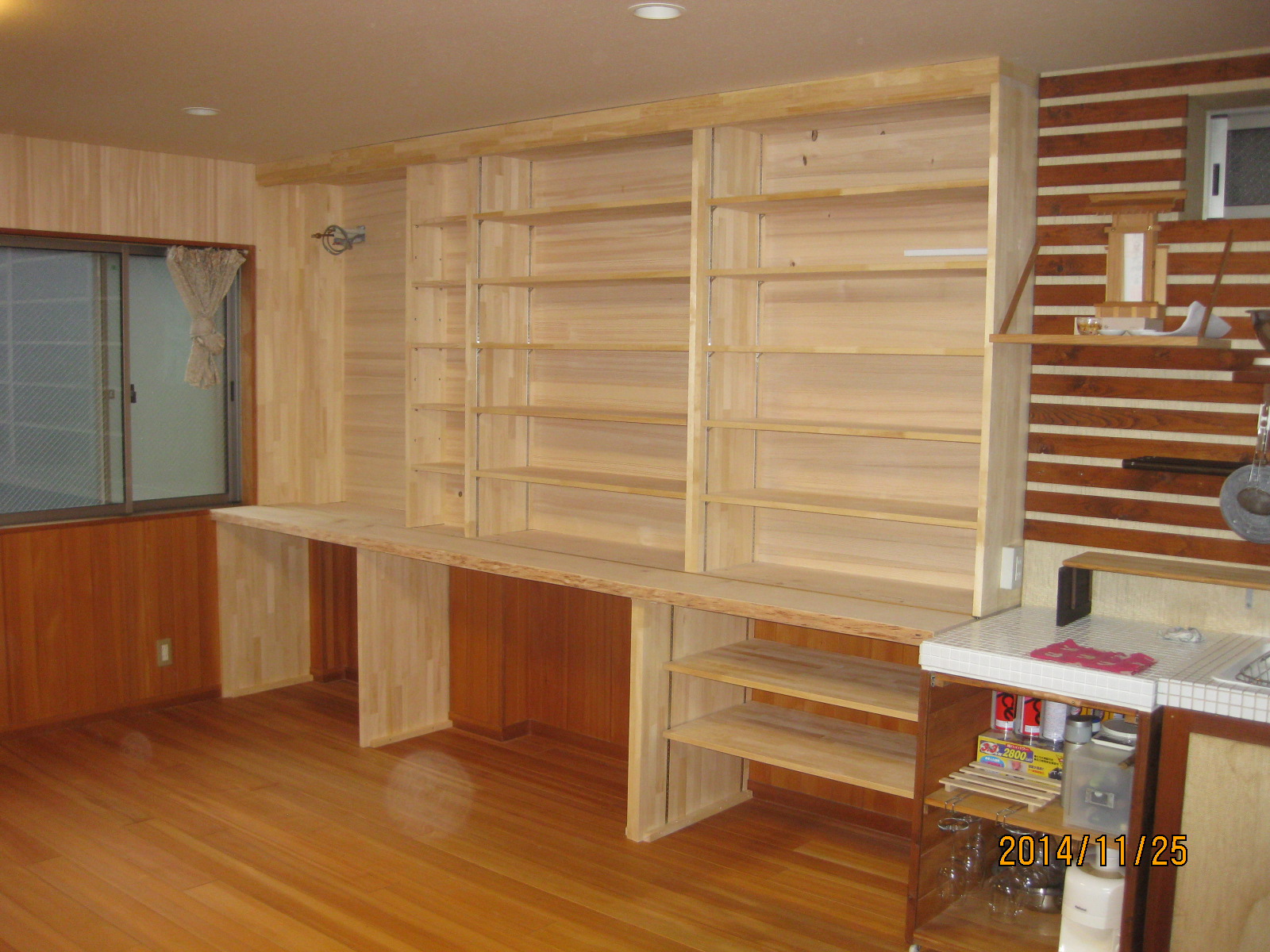 本棚と食器棚・パントリー、そして今回エアコンスペースも
