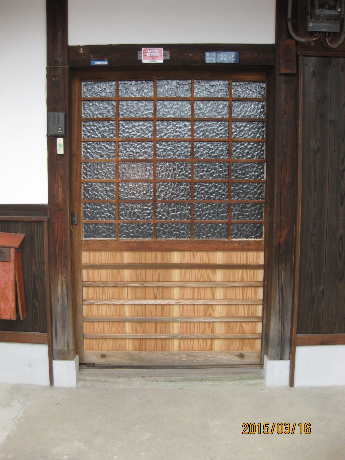 先日、ガラスを入替、腰部分の杉板を張替ました。