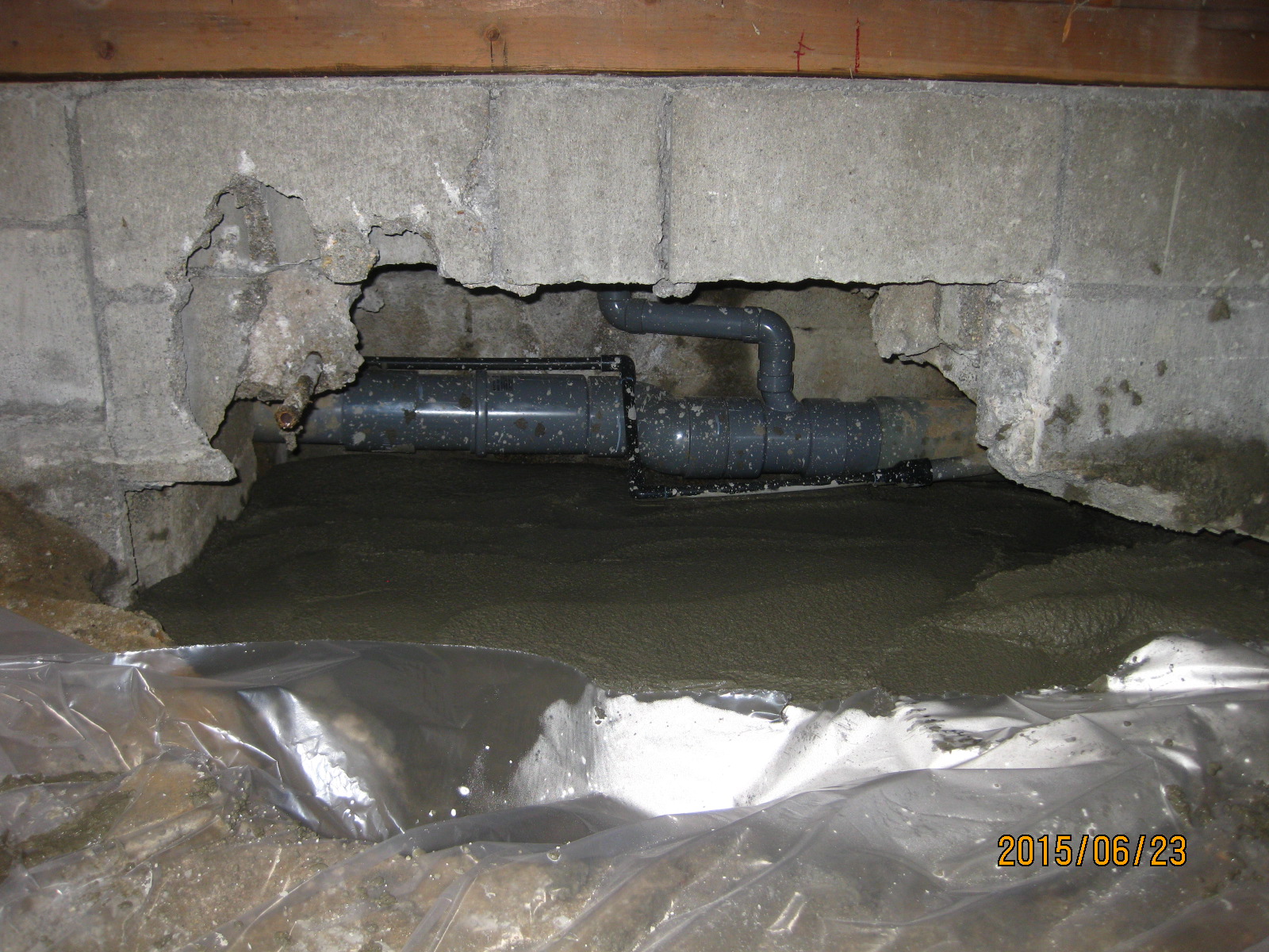 会所を撤去して、排水管をつなぎ直し、陥没した部分にモルタルを