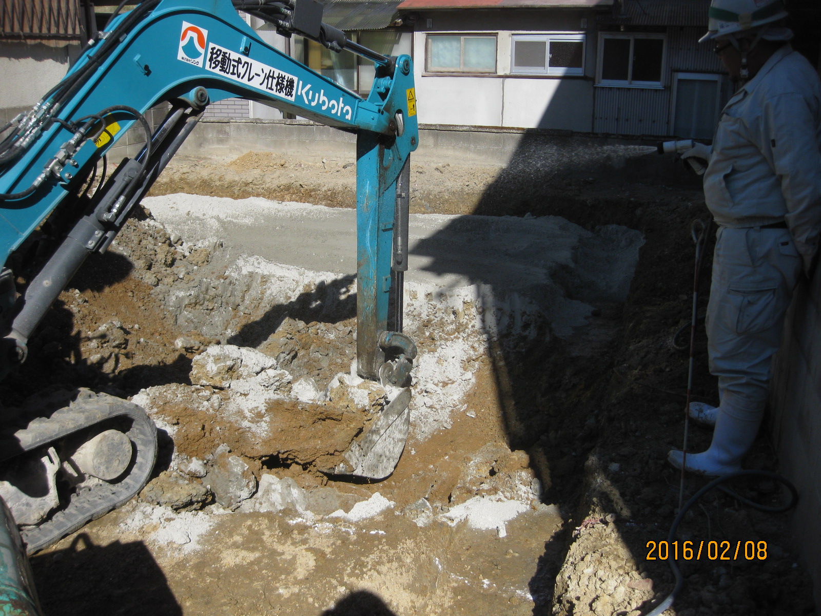 そこまで軟弱ではない場合、表層改良工事を行います。