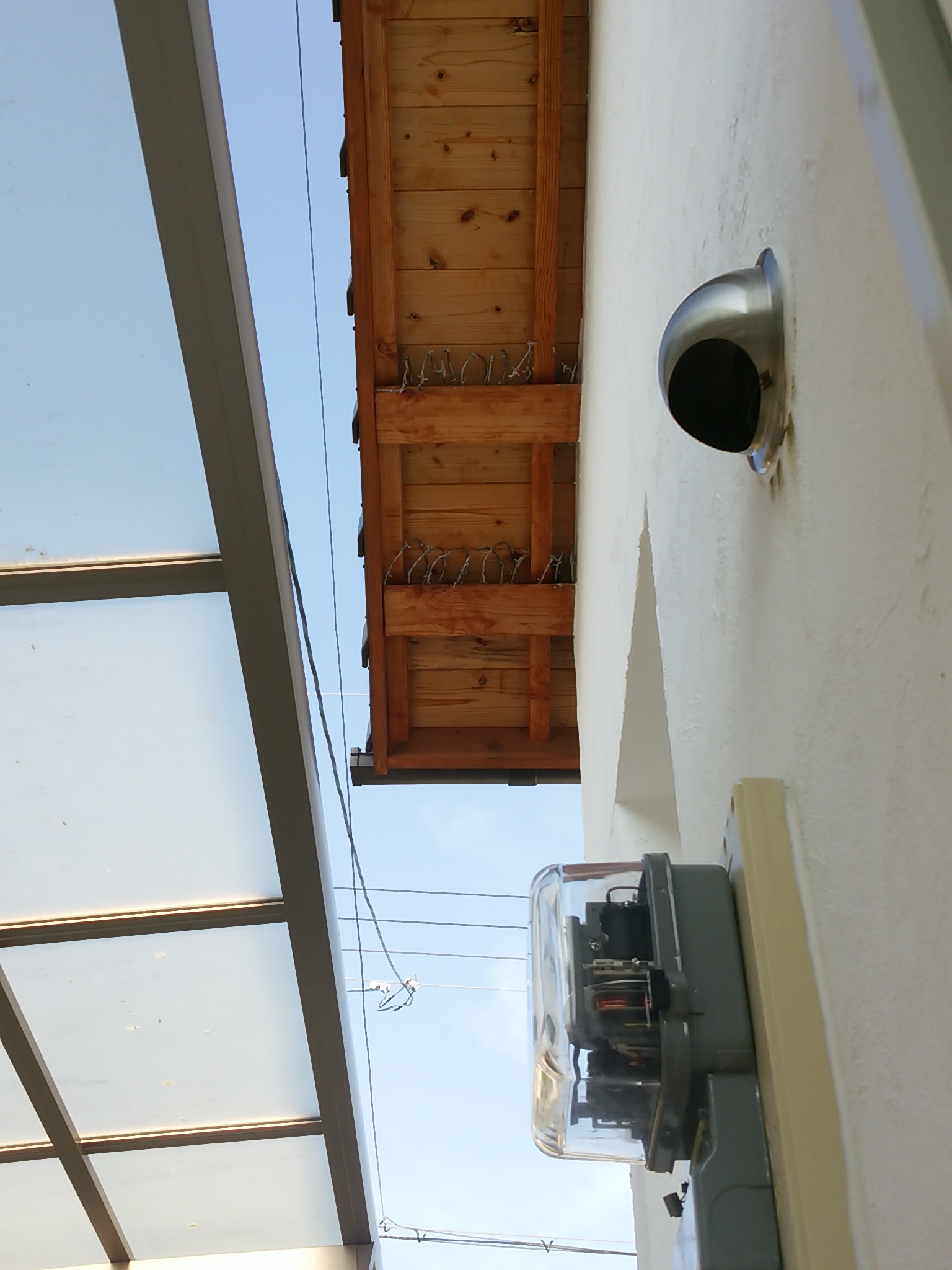 雨かかりの部分ではないので、有刺鉄線を取り付けて